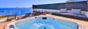 The interior of the villa is very attractive, with a contemporary design. The owners have put much thought into ensuring that their guests have a comfortable stay, and the villa features quality fixtures and fittings throughout, plus some great ‘extras’, such as the double swing seat & jacuzzi on the pool terrace, an, induction hob, and a Nespresso coffee machine. The villa is south facing, so plenty of opportunities to sunbathe all day long!